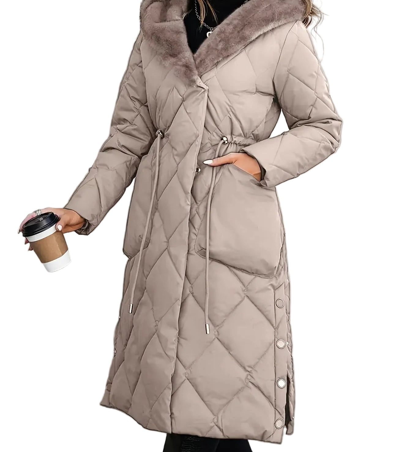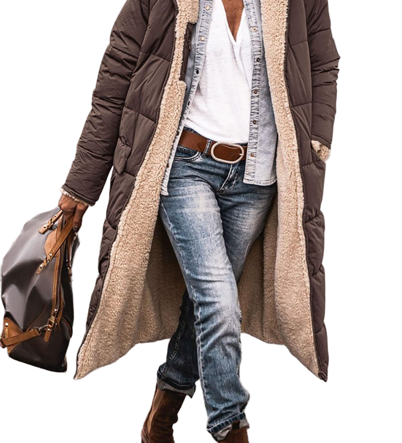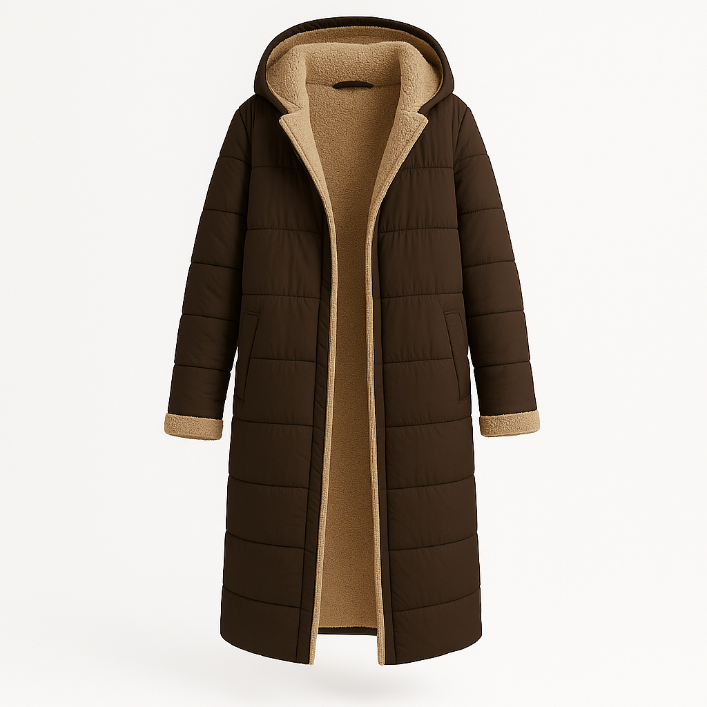 Aira™ - Pitkä, talvella vuorattu toppatakki hupulla ja korkealla kauluksella