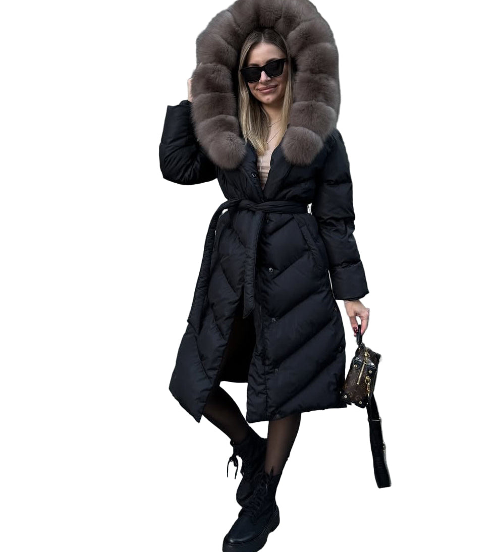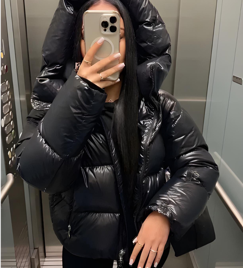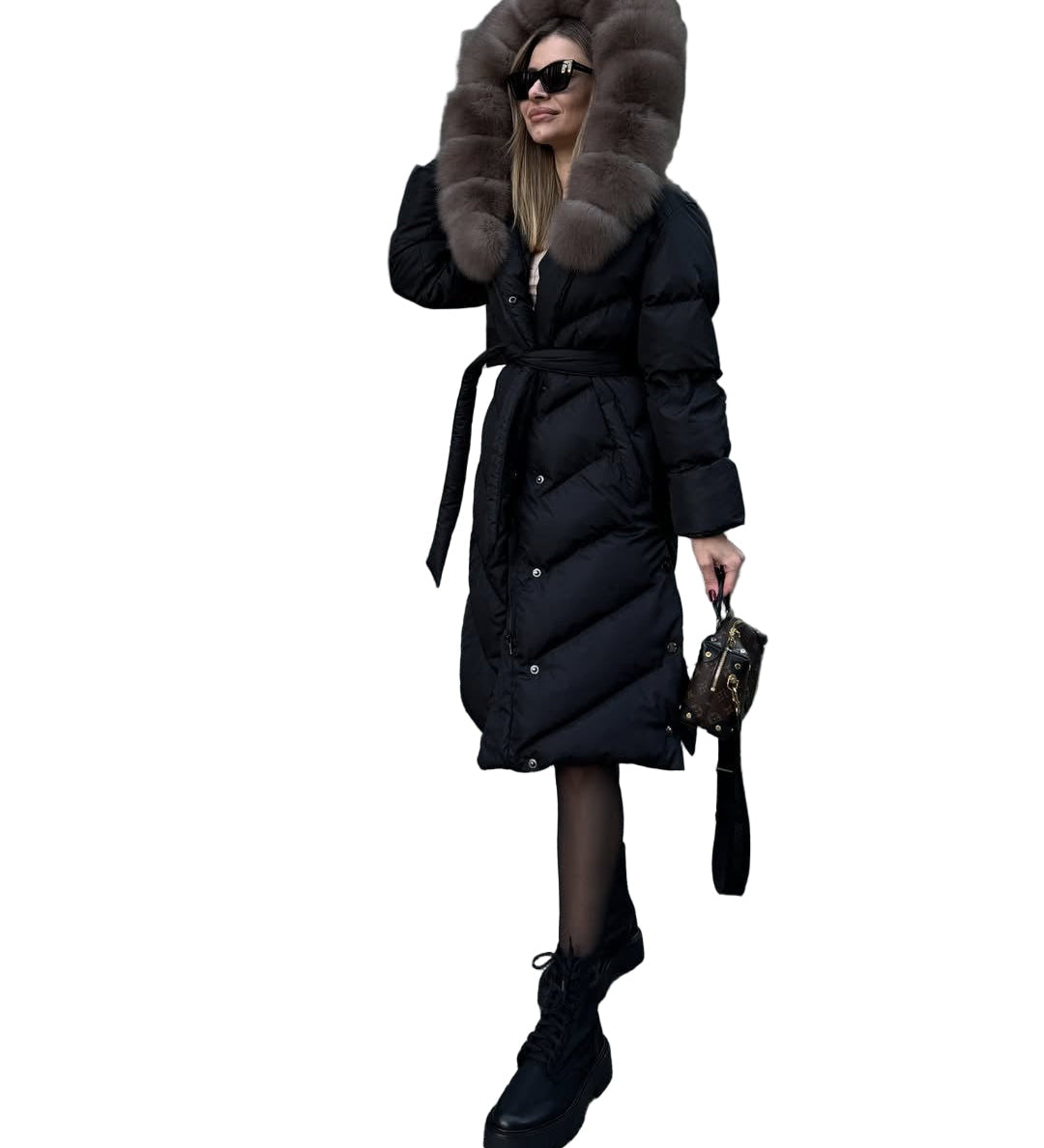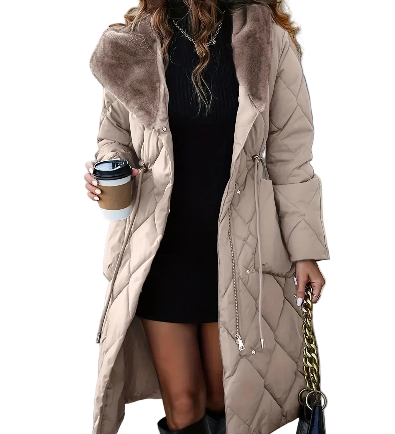 Aira™ - Pitkä, talvella vuorattu toppatakki hupulla ja korkealla kauluksella