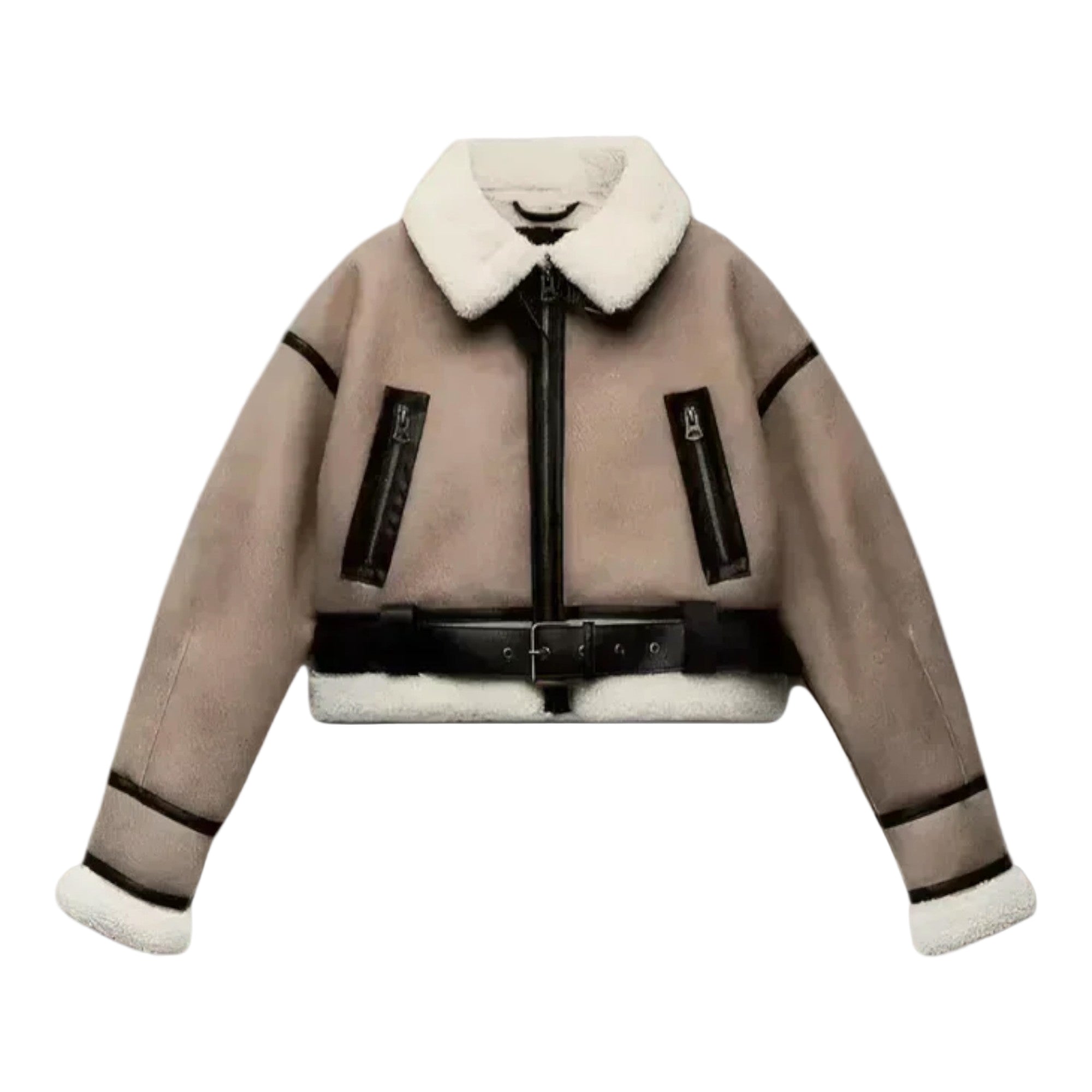 Pirjo™ - Vuorillinen nahkajäljitelmätakki vyöllä